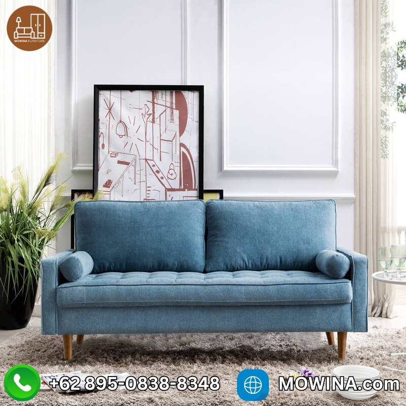Arvid Sofa 2 Seater Minimalis Model Retro Modern Jati adalah varian terbaru yang sangat kami rekomendasikan untuk melengkapi kebutuhan furnitur ruang tamu impian Anda. Sofa ini mengusung desain minimalis terbaru dengan sentuhan kaki ramping meruncing khas retro modern atau Scandinavian, menjadikannya sangat menarik. Dudukan yang empuk dan nyaman membuat Anda betah berlama-lama duduk di sofa ini.